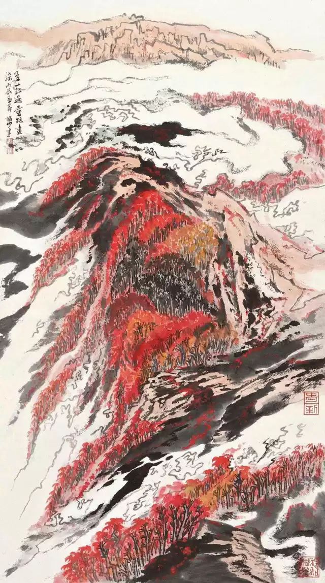 山水画的创新,首先要有对新时代热爱的激情,看到新的建设以及一切山川新貌,发生热爱,有一股激情不自禁地要求把它描绘出来。发现旧的方法不能满足新的创作需要,旧的情调不能和新事物相适应的时候,就必然会想方设法创立新方法,把传统的技法推进一步,这是创新的主要动力。