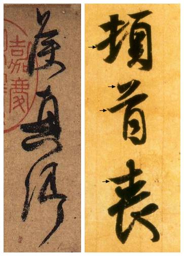 这里着重比较“篆籀绞转”与“一搨直下”两种用笔体系在行草书中的应用。