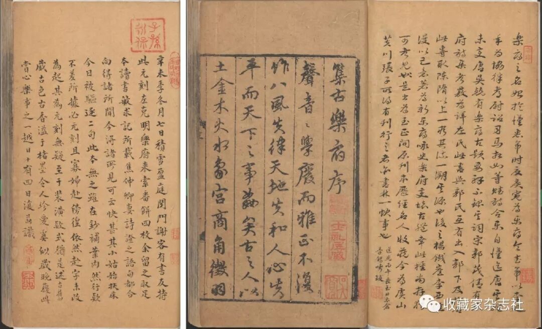元至正刻本《古乐府十卷》黄丕烈题跋,亦未见于《荛圃藏书题跋》及后出辑佚作品。《古乐府》由元代左克明辑,主要收上古至汉魏六朝、隋代的乐府诗。《古乐府》晚出于郭茂倩的《乐府诗集》,对郭书有所借鉴,但又有自己的特点。四库提要认为《乐府诗集》“务穷其流,故所收颇滥”,而《古乐府》“务溯其源,故所重在于古题古词,而变体拟作,则去取颇慎,其用意亦迥不同也”。此书元至正刻本有方震孺、黄丕烈、季锡畴、乔松年等人跋,黄跋在卷首,并钤有“荛圃”“丕烈”印。今藏国家图书馆。黄丕烈对此书的价值非常看重,跋语云:“辛未季冬月七日,积雪盈庭,闭门谢客,有书友持此元刻左克明《乐府》来,索番饼四枚,余留之。取足本《读书敏求记》所载《焦仲卿妻》诗证之,语句都合。向得诸所闻,今得诸所见,可云快甚。其‘小姑始扶床,今日被驱逐’二句,此本无之,虽在钞补叶内,然行款不差,所据必元刻。且‘寡妇赴彷徨’,依然‘赴’字未改‘“起’,其为元刻无疑。至于装潢款式犹是述古旧藏,古色古香,溢于楮墨,令人珍爱奚似,岁晚获此,赏心乐事之一。越日十有四日。复翁识。”黄丕烈在题跋中好提及书价,尤其是善本书,通常有书沽售价、还价的纪录,也因此为人讥诮。其记载售买、得书等情形,画面感极强,让人感觉如在目前,体现了黄氏收书之不易、得书之欣喜,提笔时仍能记忆犹新。但此条题跋很有代表性,其主要价值还在于校勘文字、考订版本,通过书目、文字、行款等各种例证,来证实版本确属元刻无疑。应该说,藏书家藏书乐趣,很大程度上来源于通过考订,验证“真本”。