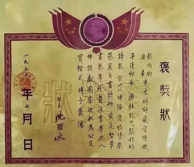 政府欲獎勵其20萬元,但張伯駒分文不取,最後只收下壹張褒獎令。